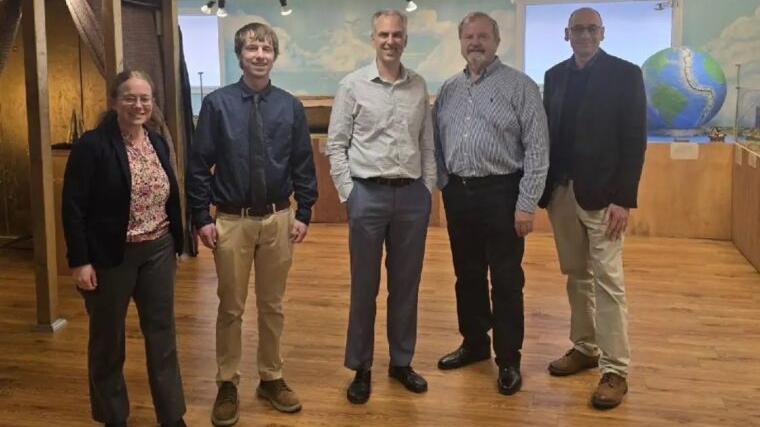Speakers of the Creation Reformation Conference gather at Bible Adventure Land in Feeding Hills, MA. From left to right: Hannah Klein, Jake Ramgren, Marcus Ross, Helmut Welke, and Stephen Lloyd
