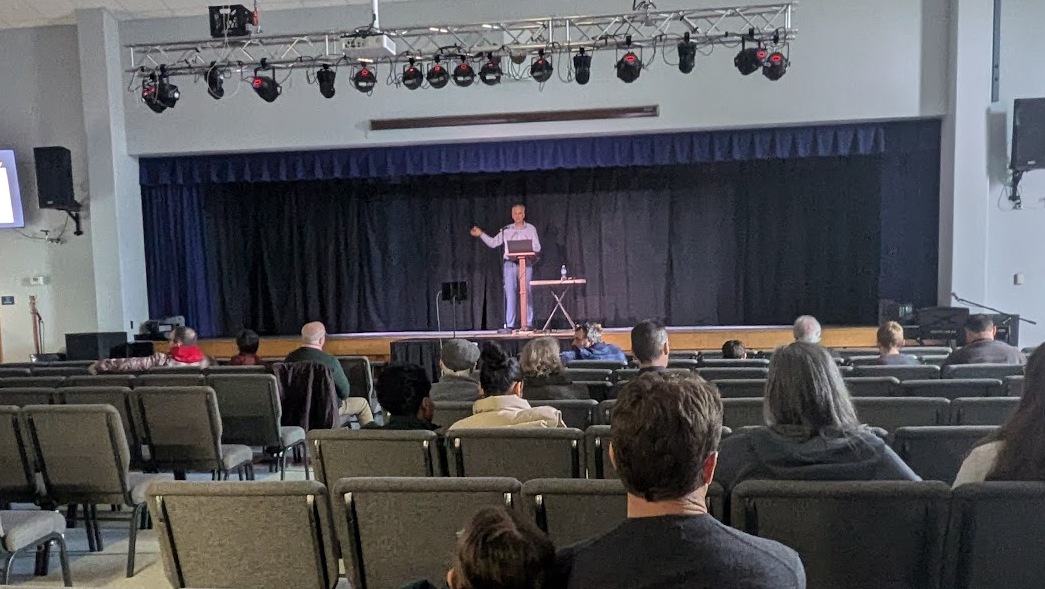 Paleontologist Marcus Ross gives a presentation at the first ever Creation Reformation Conference at Pioneer Valley Christian Academy in March, 2025