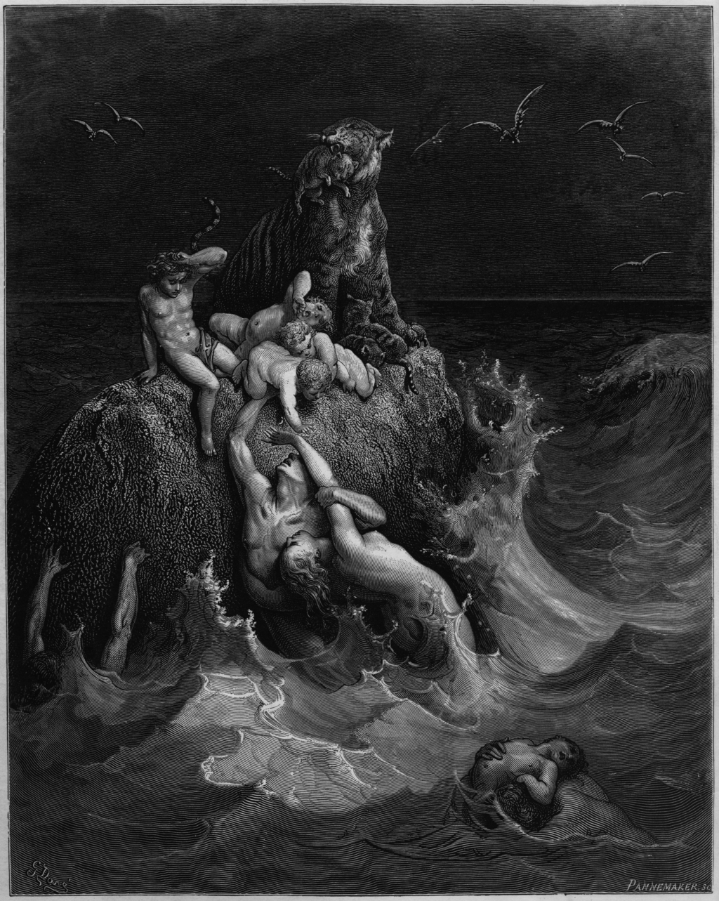 (Chaotic, dark, depressing, John Martin's oil painting certainly conveys the hopelessness of the Flood.)